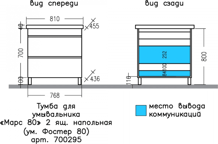 Тумба с раковиной СаНта Марс 700295 80