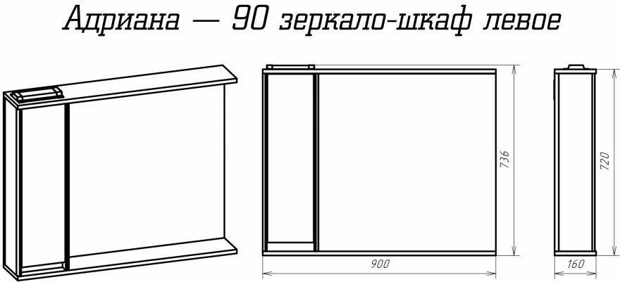 Шкаф-зеркало Misty Адриана 90 с полочкой левое