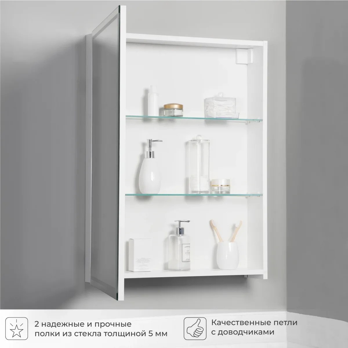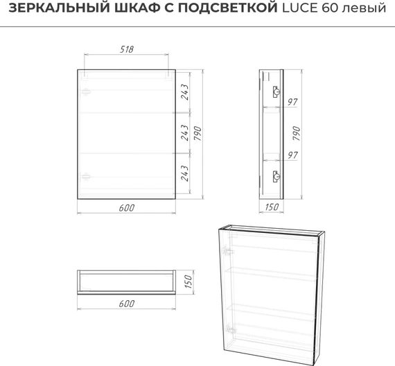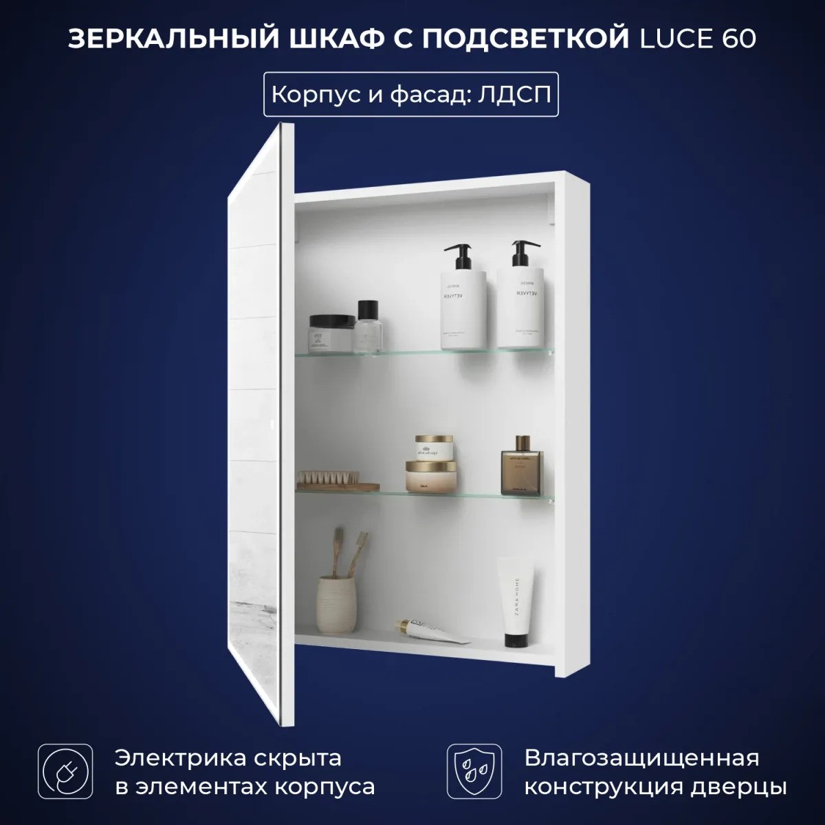 Зеркальный шкаф Итана Luce 60 изготовлен из высококачественных материалов. Удобная система крепления позволяет быстро и надежно установить шкаф на стену.