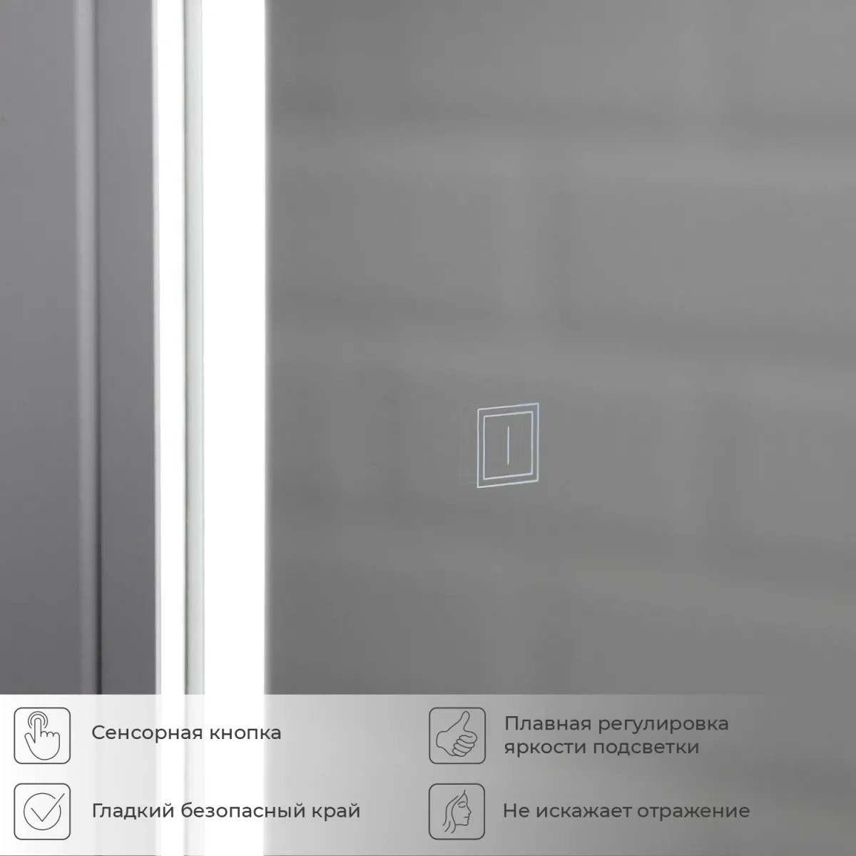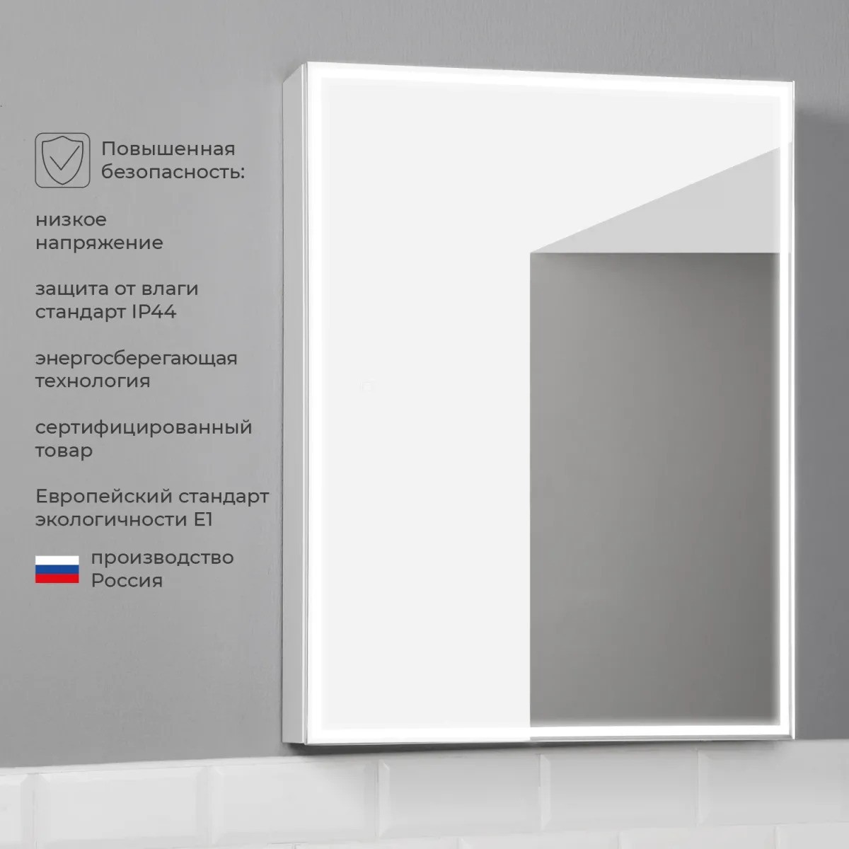 Зеркало в ванную комнату оборудовано современной энергосберегающей подсветкой, которая обеспечивает яркий и равномерный свет, делая ваши утренние процедуры комфортными и удобными. Мягкое освещение идеально подходит для нанесения макияжа, бритья и других гигиенических процедур.