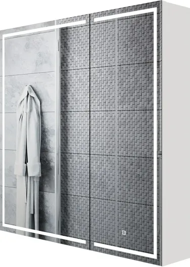 Основной особенностью шкафа является встроенная подсветка, которая обеспечивает комфортное использование зеркала даже в условиях недостаточного освещения. Зеркало с подсветкой значительно упрощает утренние и вечерние гигиенические процедуры, делая их максимально удобными.