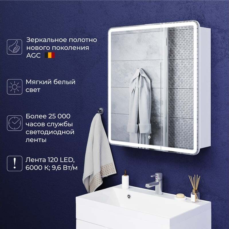 Элегантные зеркальные шкафы с интегрированной подсветкой сочетают в себе функциональность, современный дизайн и продуманную организацию пространства. Модельный ряд представлен в различных размерах, что позволяет подобрать оптимальный вариант для ванной комнаты любого метража.