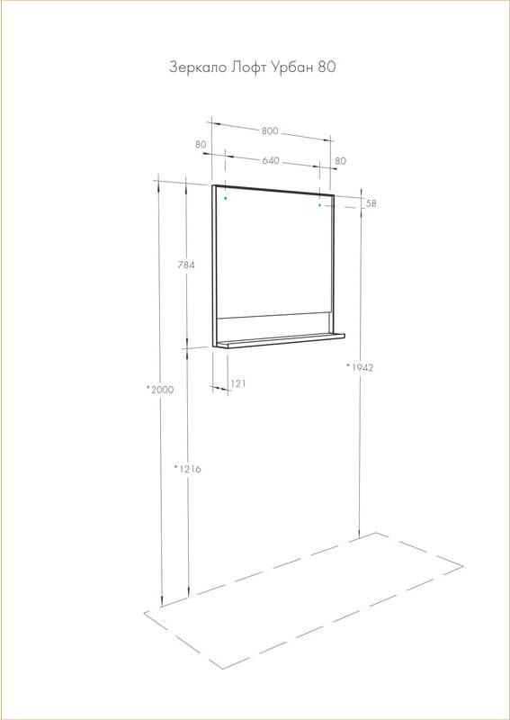 Зеркало Акватон Лофт Урбан 80 дуб орегон 1A247902LQX50 на подложке из влагостойкой плиты, обрамленное по периметру металлическим профилем и полочкой с ограничителем, который препятствует падению предметов.