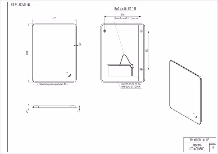 - зеркало с подсветкой, комплект креплений, инструкция, гарантийный талон