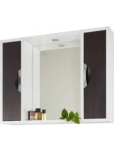 Зеркало Vod-ok Клаудия 105 белый-венге. Эта модель зеркала привлекает своей функциональностью. Здесь и подсветка с выключателем, и розетка, и всегда нужная полочка. Два шкафчика с полками.