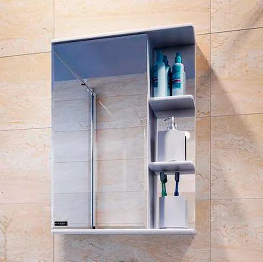 Зеркальный шкаф «Ника» российской марки «СанТа» – полноценный предмет мебели для ванной комнаты в современном стиле. Лаконичная прямоугольная форма, отсутствие декора, сияющие глянцевые поверхности корпуса и зеркала подчеркивают эстетику модерна, для которой функциональность изделия важнее декоративных свойств. Зеркало «Ника» поможет обыграть интерьер: увеличить пространство и освещенность. Композиционно зеркало-шкаф состоит из открытых угловых полок по бокам и распашной секции за зеркальным фасадом. На них компактно и аккуратно разместятся косметика и предметы гигиены. Модель изготовлена из влагостойкой ДСП, лакированной несколькими слоями белоснежной краски. Зеркальное полотно, отделанное фацетом, покрыто глянцевой пленкой, устойчивой к воздействиям влаги и высоких температур.