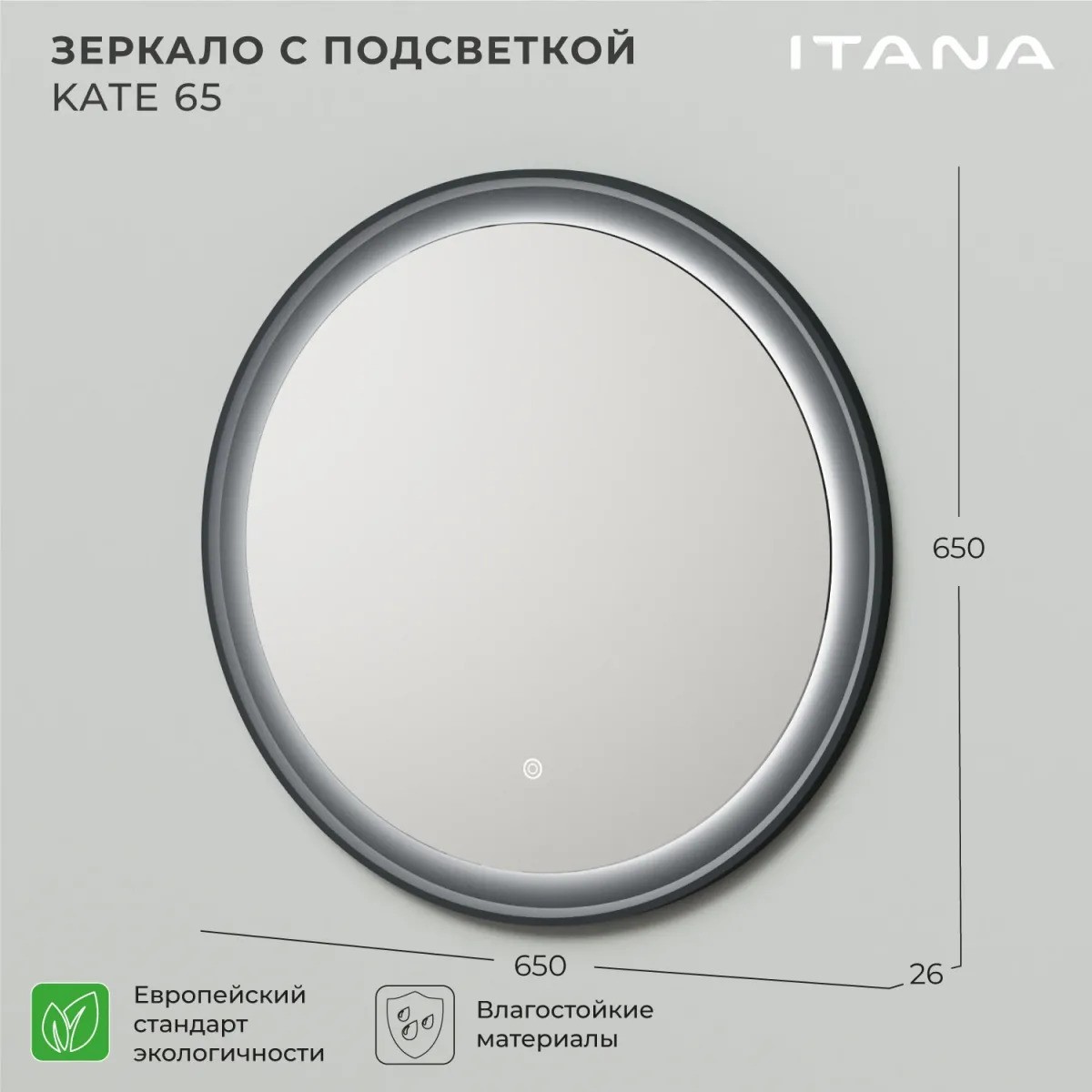 Зеркало Итана Kate 65 4657792956303 Антрацит УТ-00178374