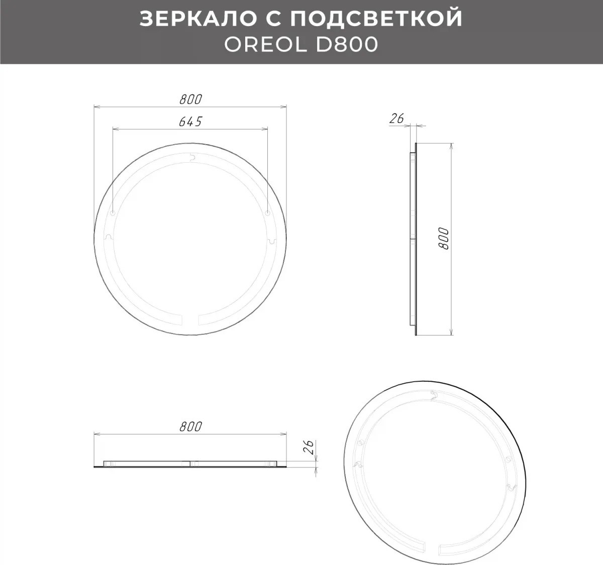 Зеркало Itana Oreol D800 с подсветкой УТ-00187389