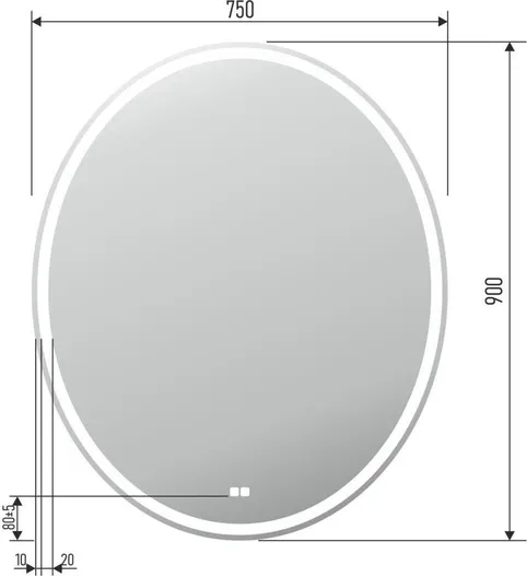 Зеркало STL Design Oval Vero 75х90 с подсветкой с кнопкой, часы