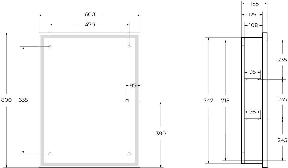 Дополнительная информация: зеркальный шкаф оснащен встроенной подсветкой по периметру и сенсорным выключателем