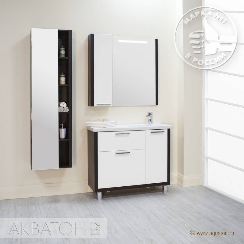 Шкаф зеркальный с подсветкой Акватон Брайтон 100 венге