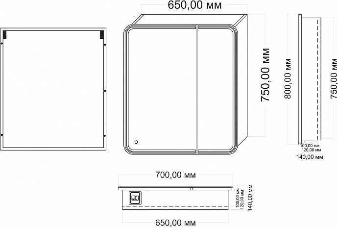 Зеркало-шкаф Art&Max Verona AM-Ver-700-800-2D-L-DS-F с подсветкой, с сенсорным выключателем