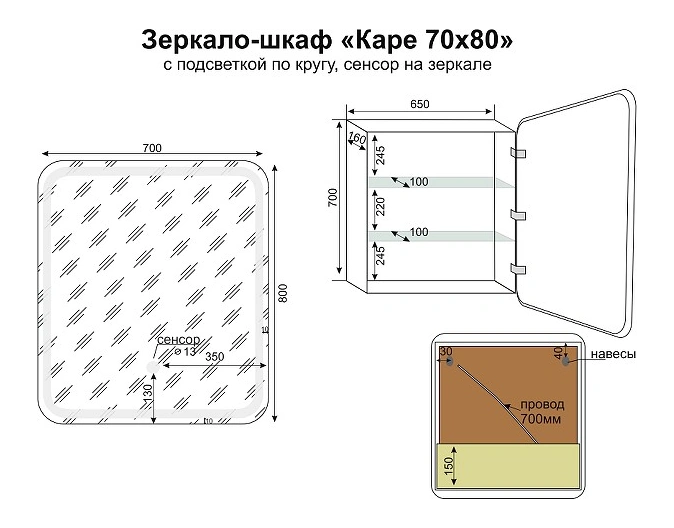 Зеркало-шкаф Style Line Каре СС-00002371 70 с подсветкой, левое