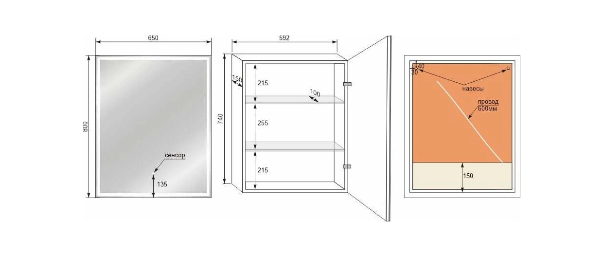 Зеркало-шкаф Style Line El Fante Квартет 65 СС-00002384 с подсветкой, сенсор на зеркале