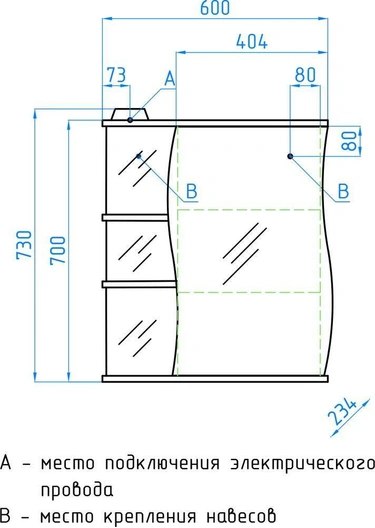 Зеркало-шкаф Style Line из серии Эко Волна вдохновит плавными очертаниями и элегантным дизайном. Оно выполнено из влагостойких материалов в белом цвете, который визуально делает комнату светлее и просторнее. Изнутри шкаф покрыт ламинированным декором «Луино». Система хранения организована с помощью двух открытых полочек слева и изолированной секции с тремя отделениями. Прозрачные держатели Hafele надежно фиксируют стеклянные полочки. Край стекла с гладкой трапециевидной еврокромкой безопасен при касании. В изделии предусмотрены доводчики и встроенная подсветка, которая активируется с помощью электровыключателя. Модель подвешивается на стену на врезные скрытые кронштейны.