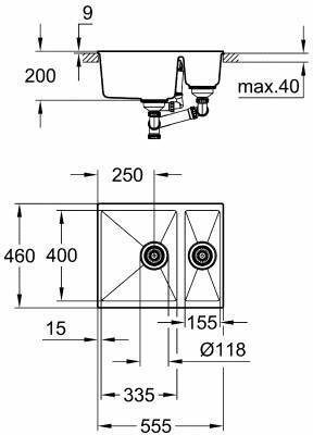 Мойка GROHE K500 31648AP0 с 1,5 чашей, 555 x 460 мм, черный гранит