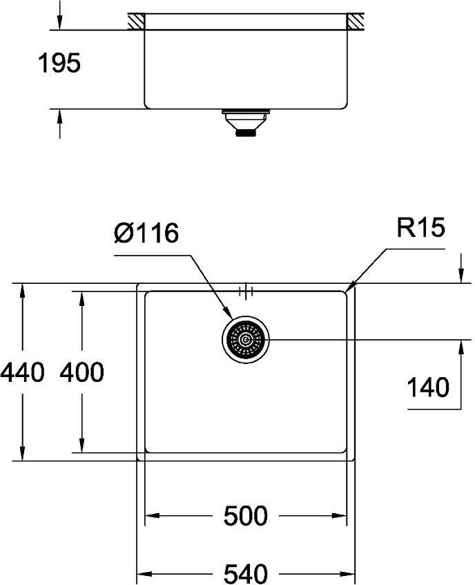 - требуемый размер отверстия в столешнице для установки мойки: 500 x 400 мм