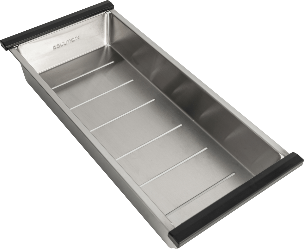 Коландеры Paulmark изготовлены из нержавеющей стали ASIS 304, устойчивы к перепадам температур и к нагрузке. Используются для мытья и размораживания продуктов. Устанавливаются на бортики мойки и в специальные ступеньки моек серии PRO. Размер отверстий в донной части не позволит выпасть даже мелким ягодам и в то же время не препятствует свободному стоку воды. Глубина коландера - 6 см.