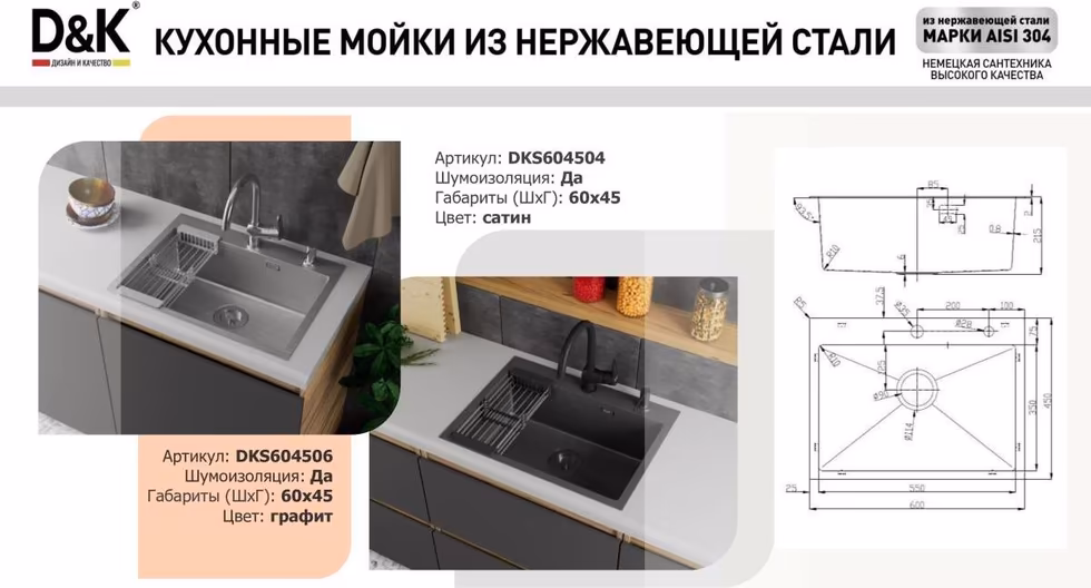 Мойка кухонная D&K DKS604506 графит