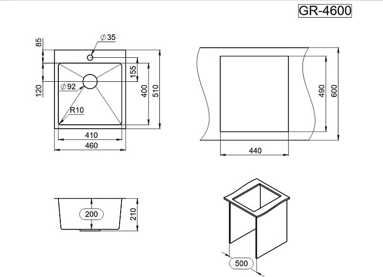 Мойка кухонная Granula GR-4600 460x510, золото сатин УТ-00197298