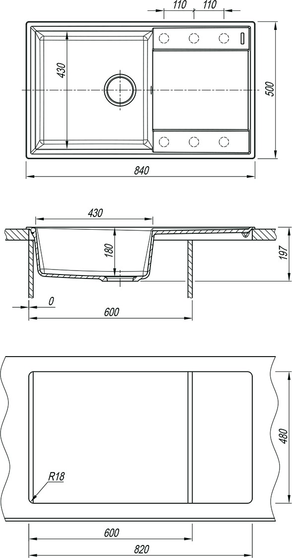 - Отверстия под смеситель: