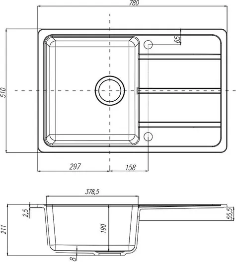 Классическая мойка из литого мрамора с одной чашей и крылом. Покрытие Gelcoat обеспечивает высокую устойчивость к механическим воздействиям, которым подвергается поверхность мойки в процессе эксплуатации. Является стойким к большинству агрессивных и красящих веществ. Мойка обладает высокими бактерицидными свойствами и является экологически чистым изделием. Устойчива к резким перепадам температур.