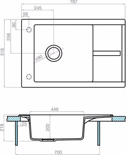- Отверстия под смеситель: