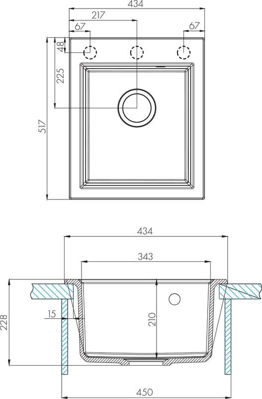 - Отверстия под смеситель: