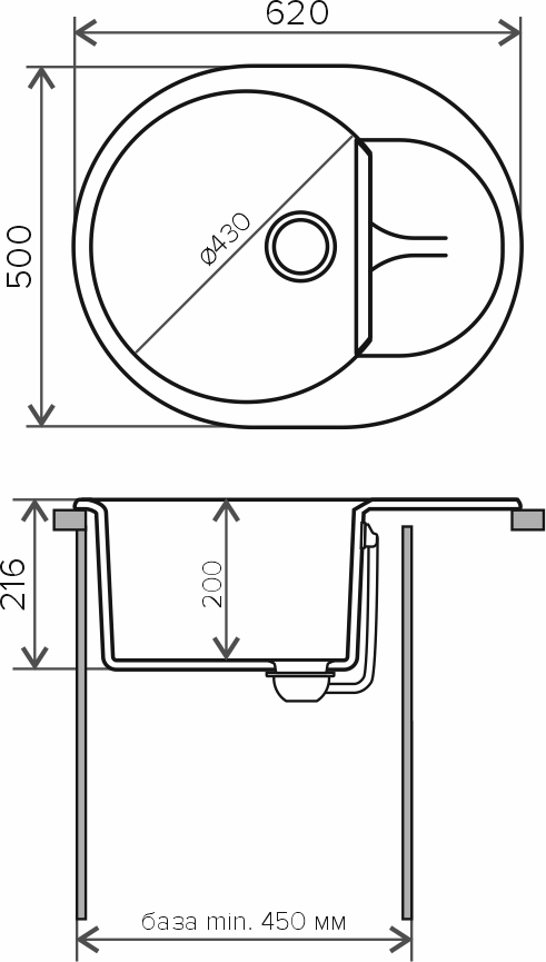 Форма, размер: Овальная мойка создает ощущение уюта и комфорта и не занимает много места.