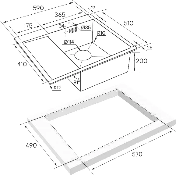 - Мойка кухонная - 1 шт. Инструкция - 1 шт.