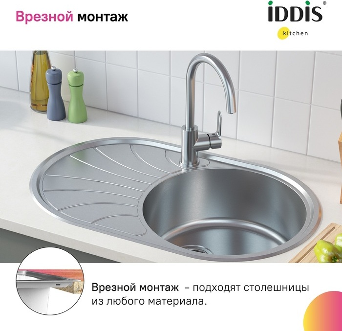 Мойка кухонная Iddis Suno SUN77SDi77 770х480 шелк УТ-00190364