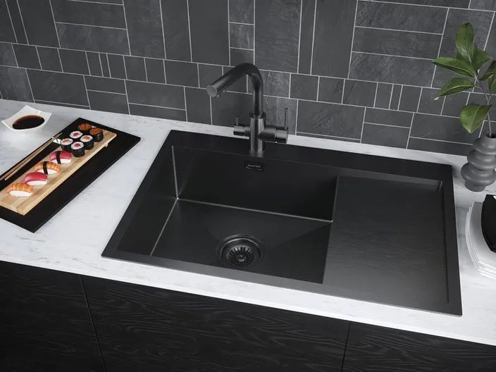 Мойка кухонная Paulmark AISI304 Velten 78F вороненая сталь, левая, 780х510 мм УТ-00094071