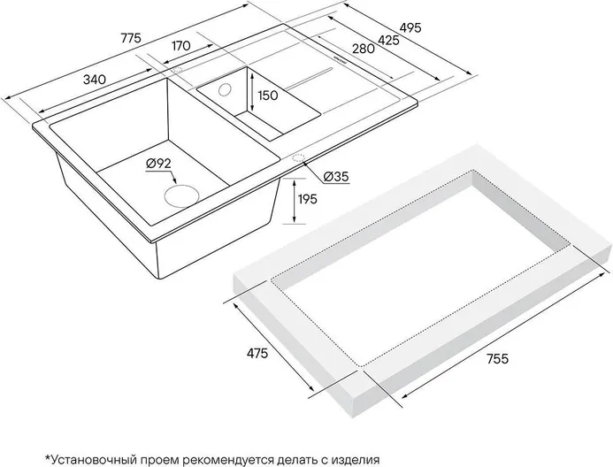 Материал мойки экстремально устойчив к механическим повреждениям, а также обладает повышенной термоустойчивостью и пожаробезопасностью.