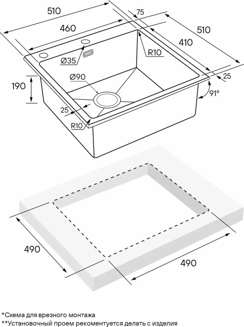 - Мойка кухонная - 1 шт. Инструкция - 1 шт.