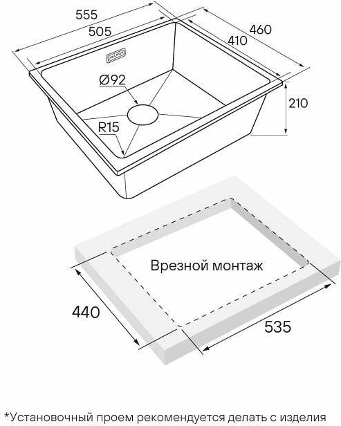 Универсальный монтаж Мойка создана как для современного способа монтажа под столешницу, так и для классического врезного монтажа.