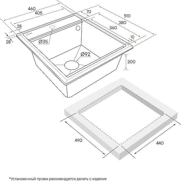 Внешние грани мойки были специально разработаны таким образом, чтобы мойка прилегала к столешнице максимально плотно, а переход края мойки к столешнице плавно и эстетично.