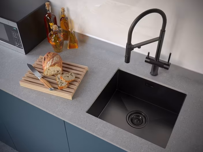 Мойка кухонная Paulmark AISI304 Aller 48 Uni вороненая сталь, 480х440 мм УТ-00094158