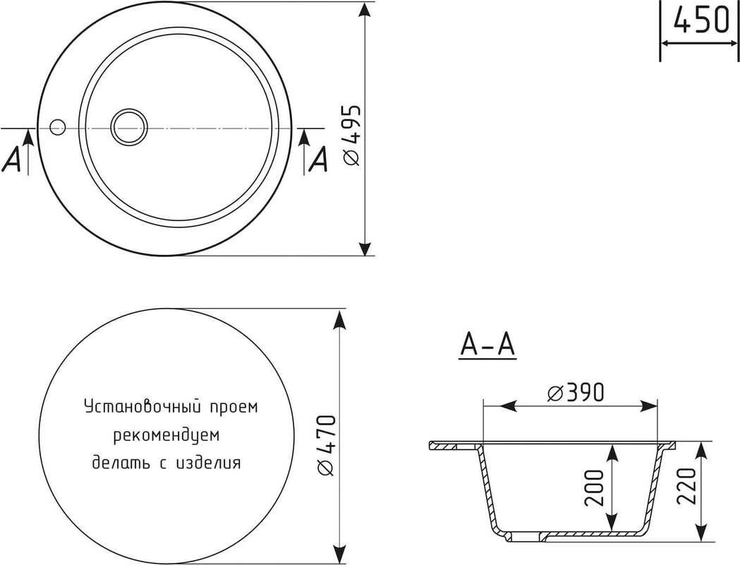 - Диаметр сливного отверстия: