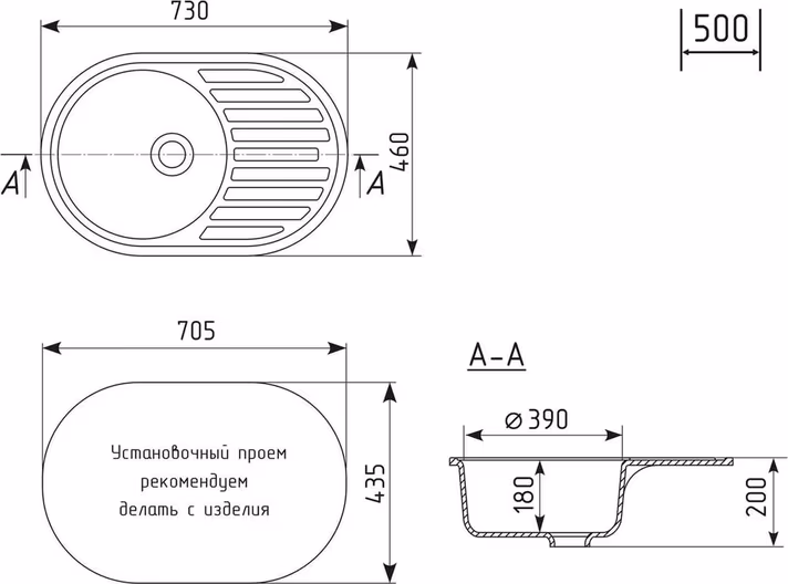 Мойка кухонная Mixline 551926 73x46 ML-GM16 овальная с крылом, черная УТ-00190952