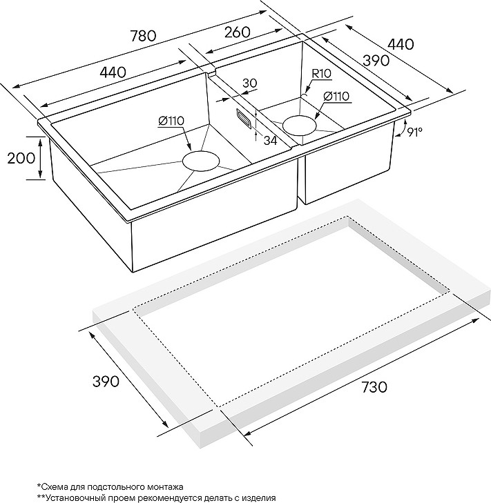 - Мойка кухонная - 1 шт. Инструкция - 1 шт.