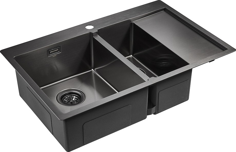 Мойка кухонная Paulmark Union PM537851-GML вороненая сталь, левая