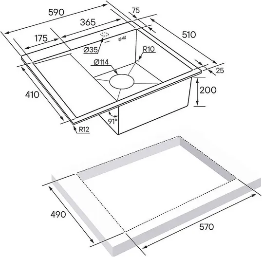 Мойка кухонная Paulmark Kroner 59F брашированная сталь, правая, 590х510 мм УТ-00145269