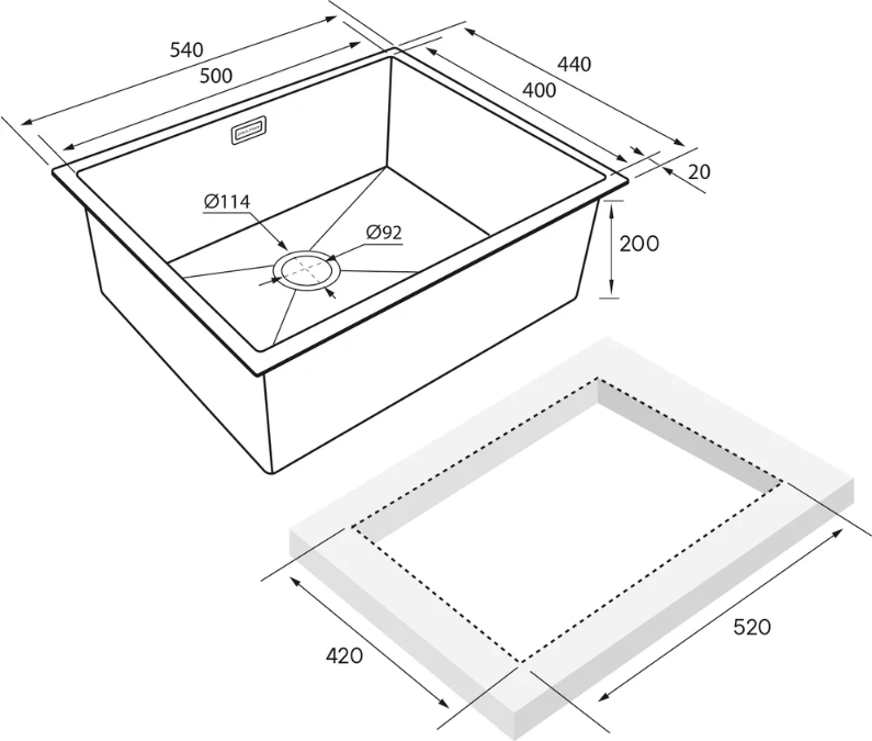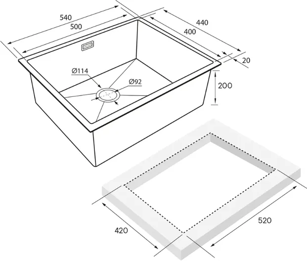 - Мойка кухонная - 1 шт. Инструкция - 1 шт.