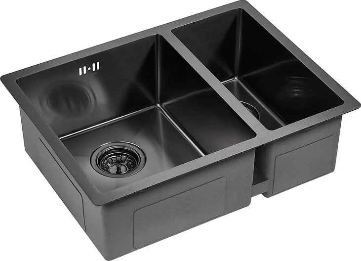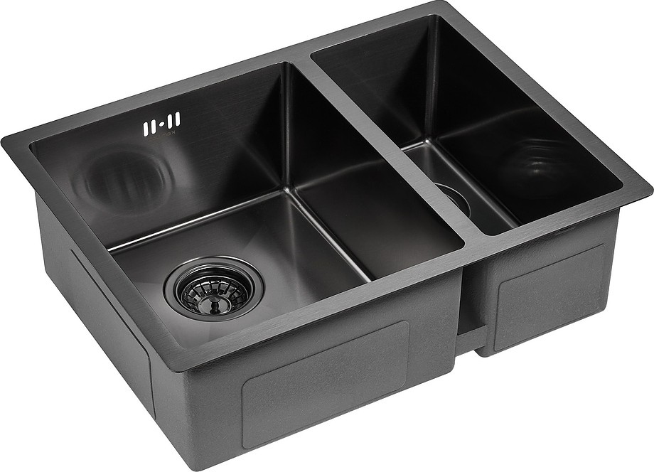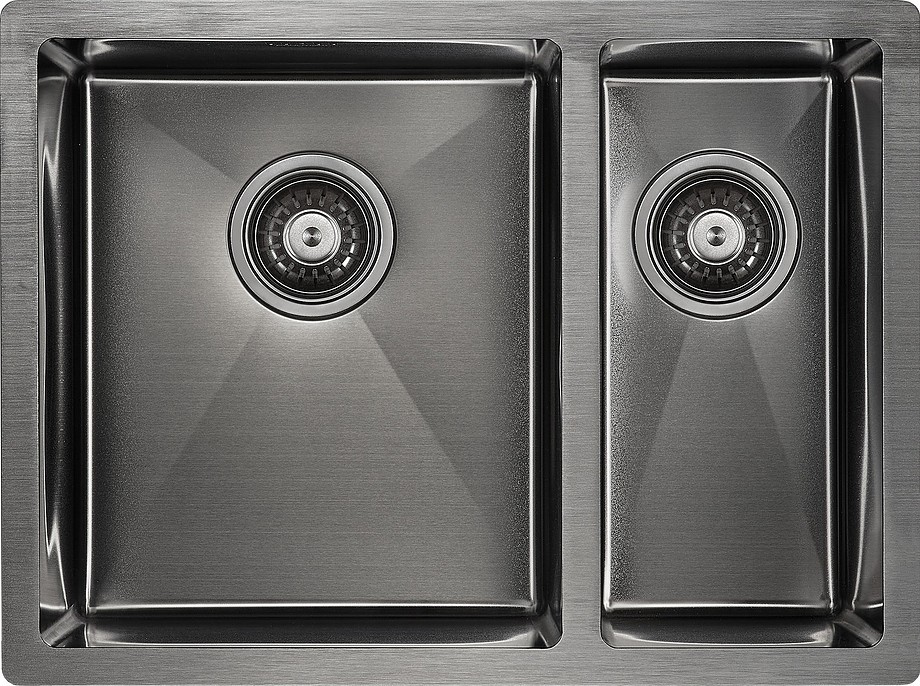 Мойка кухонная Paulmark Gerberg 59/2S Uni вороненая сталь, левая, PVD, 590х440 мм