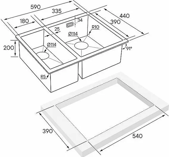 Мойка кухонная Paulmark Gerberg 59/2S Uni вороненая сталь, левая, PVD, 590х440 мм УТ-00145301