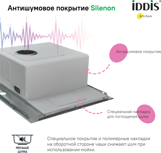 Специальное антишумовое покрытие и накладки на обороте чаши снижают шум при использовании. Гарантия на мойки IDDIS® – 15 лет, на выпуск и сифон – 1 год.