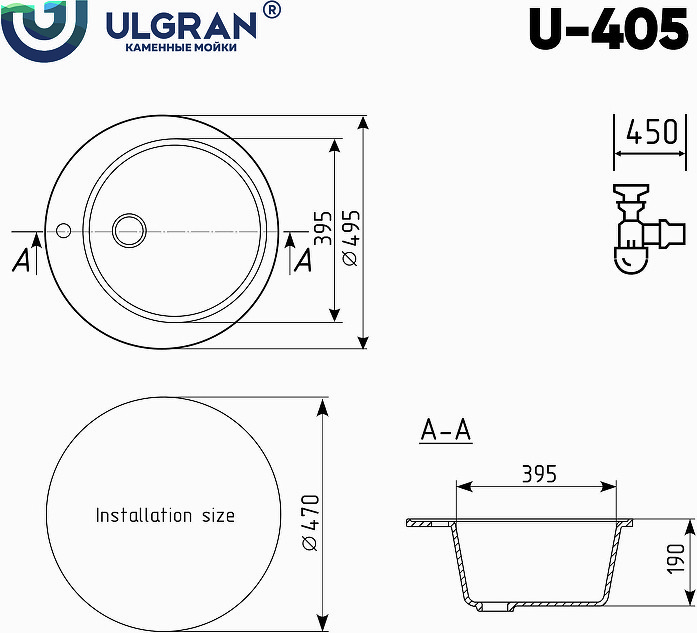Лидер продаж в России. Круглая мойка из искусственного камня. Модель Ulgran U-405. Одна из самых недорогих моек подобного класса в стране. В сочетании с высоким качеством композитного материала Ulgran, модель U-405 становится безусловным лидером в своем классе.