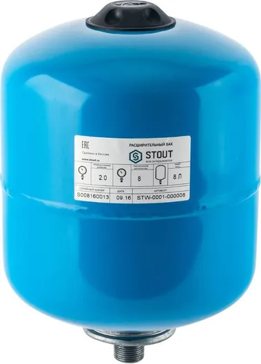 Гидроаккумулятор 8 литров Stout STW-0001-000008. вертикальный, синий СТ041854