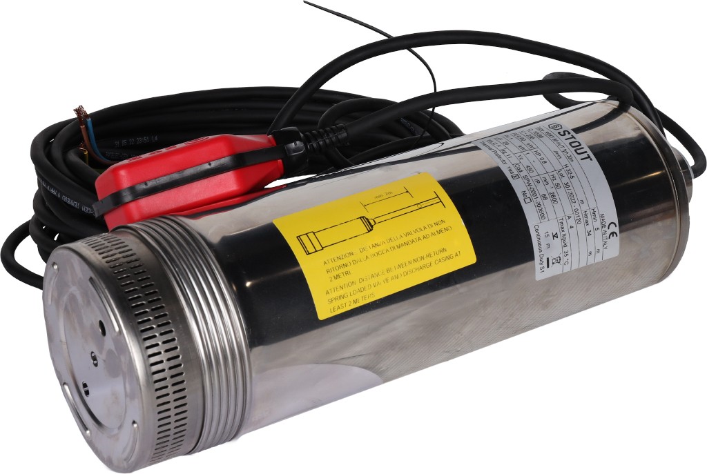 Погружной колодезный насос STOUT предназначен для перекачивания воды из глубоких и узких колодцев и скважин. Жидкость должна быть чистой, без длинноволокнистых включений и крупных твердых частиц.