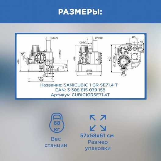 SANICUBIC®1 GR - это подъемная станция с 1 двигателем, сертифицированным по IP68. Данная модель оснащенная высокоэффективной системой измельчения.